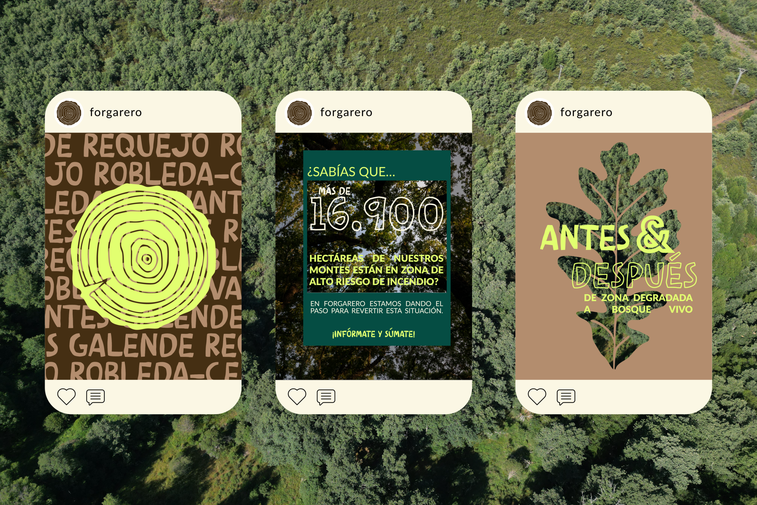 En colaboración con Estudio de la Trilla, llevamos a cabo la identidad visual completa del proyecto y todo el diseño gráfico necesario para su implementación, incluyendo materiales informativos, soportes digitales, contenidos para redes sociales y piezas audiovisuales. El objetivo: comunicar FORGARERO de forma clara, cercana y visualmente coherente